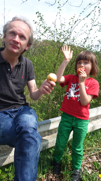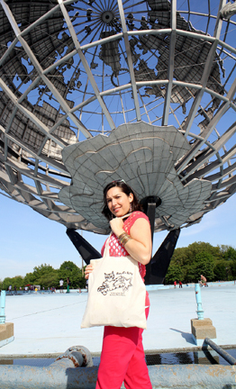 Natural canvas tote bag, 15x16 inches, with Kung Fu Kitty book cover design silk-screened in black ink: Kung Fu Kitty on front, dragon on back.